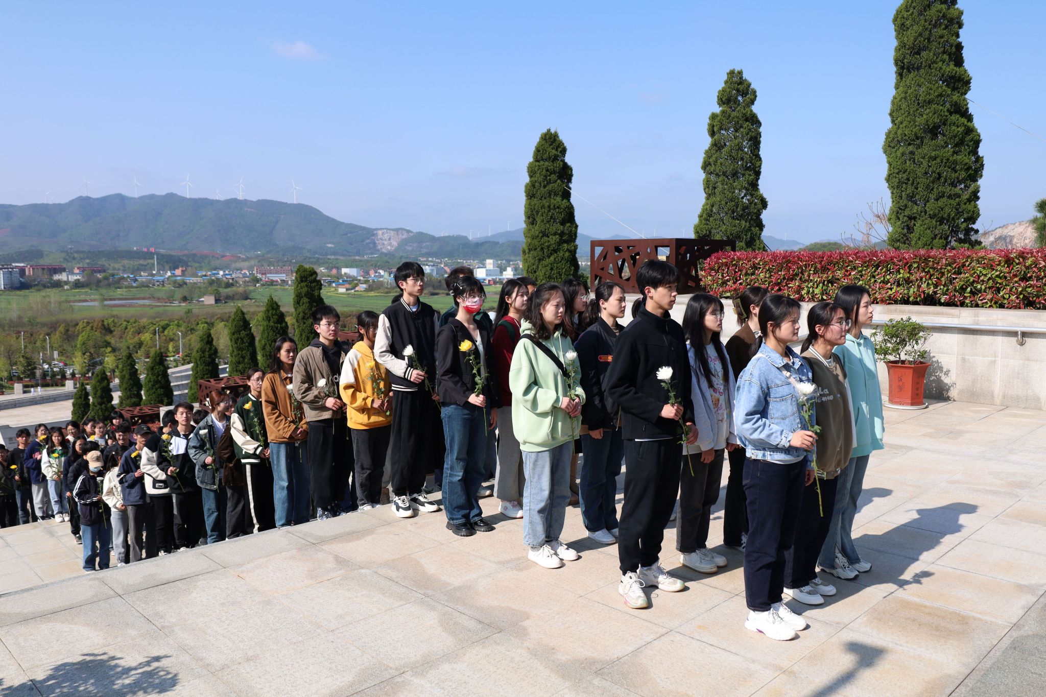 活动伊始,面对革命烈士纪念碑,全体入党积极分子全体肃立,神情庄重,三人一组地依次上前敬献鲜花,并集体进行默哀,表达对革命烈士的崇敬之情和悼念之情。
