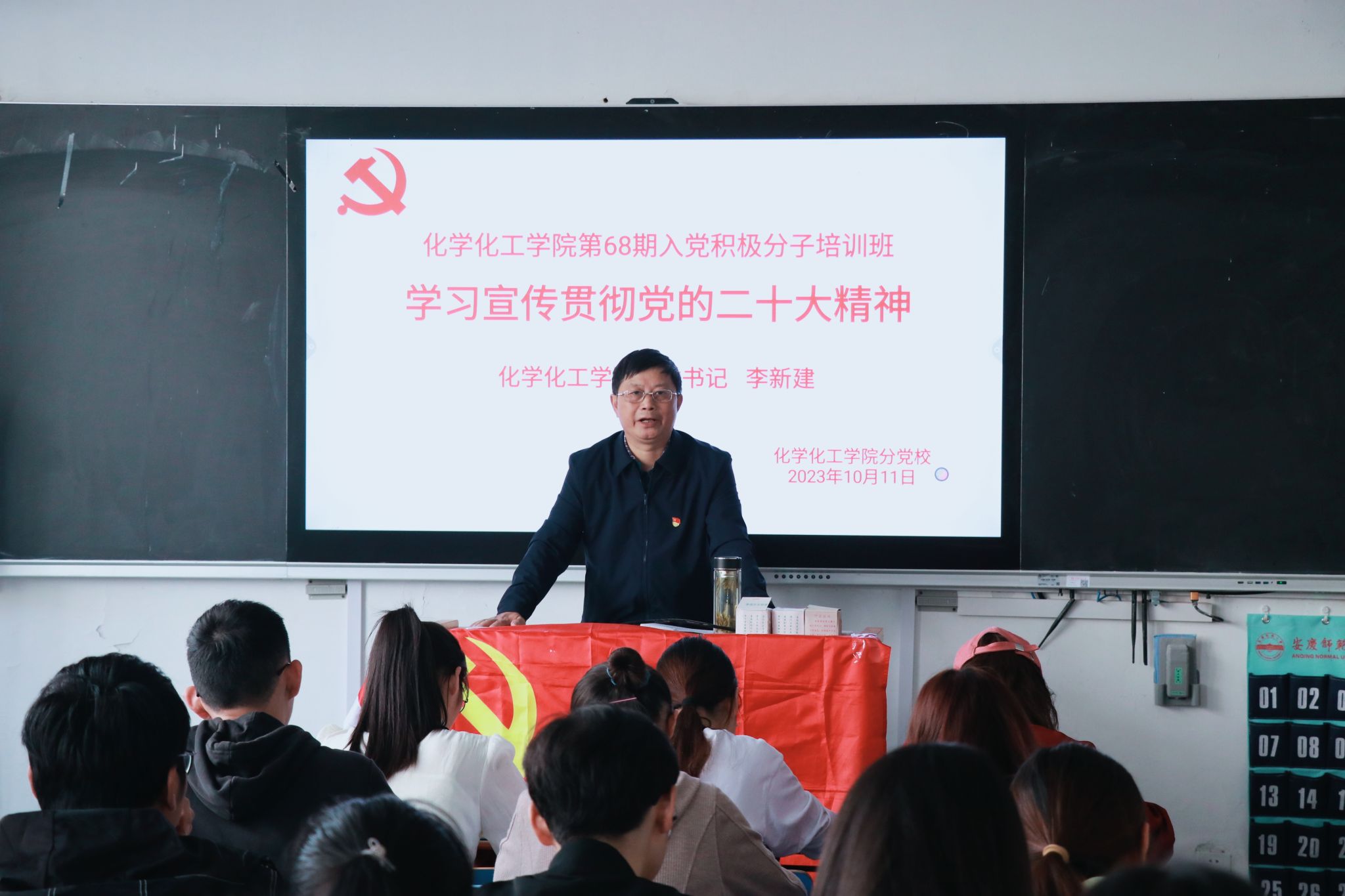 10 月11日,伟德victor1946于B102举行第68期入党积极分子培训班开班仪式。学院党委书记李新建、各学生党支部书记出席了开班仪式。仪式由学院党委副书记鲍青燕主持。