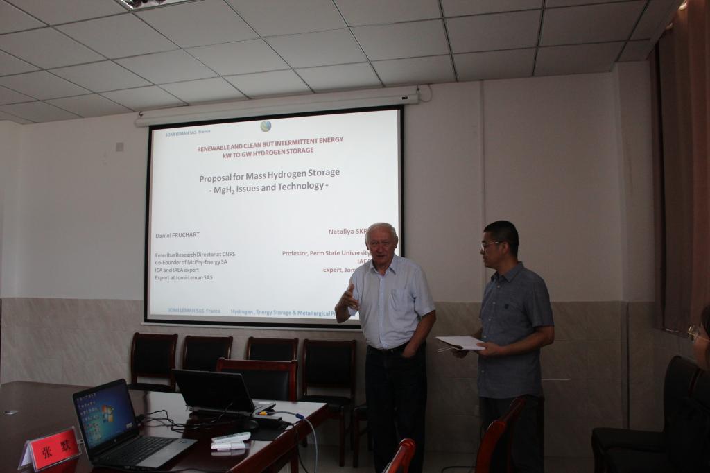 随后,丹尼尔.弗吕夏特教授和娜塔莉.斯科娅贝娜教授分别作题为《国际氢能源及氢存储技术现状进展》和《强烈塑形变形法处理镁及镁基合金实现快速氢反应》学术报告,报告由伟德victor1946王钧伟教授主持,在校师生40余人聆听了报告。