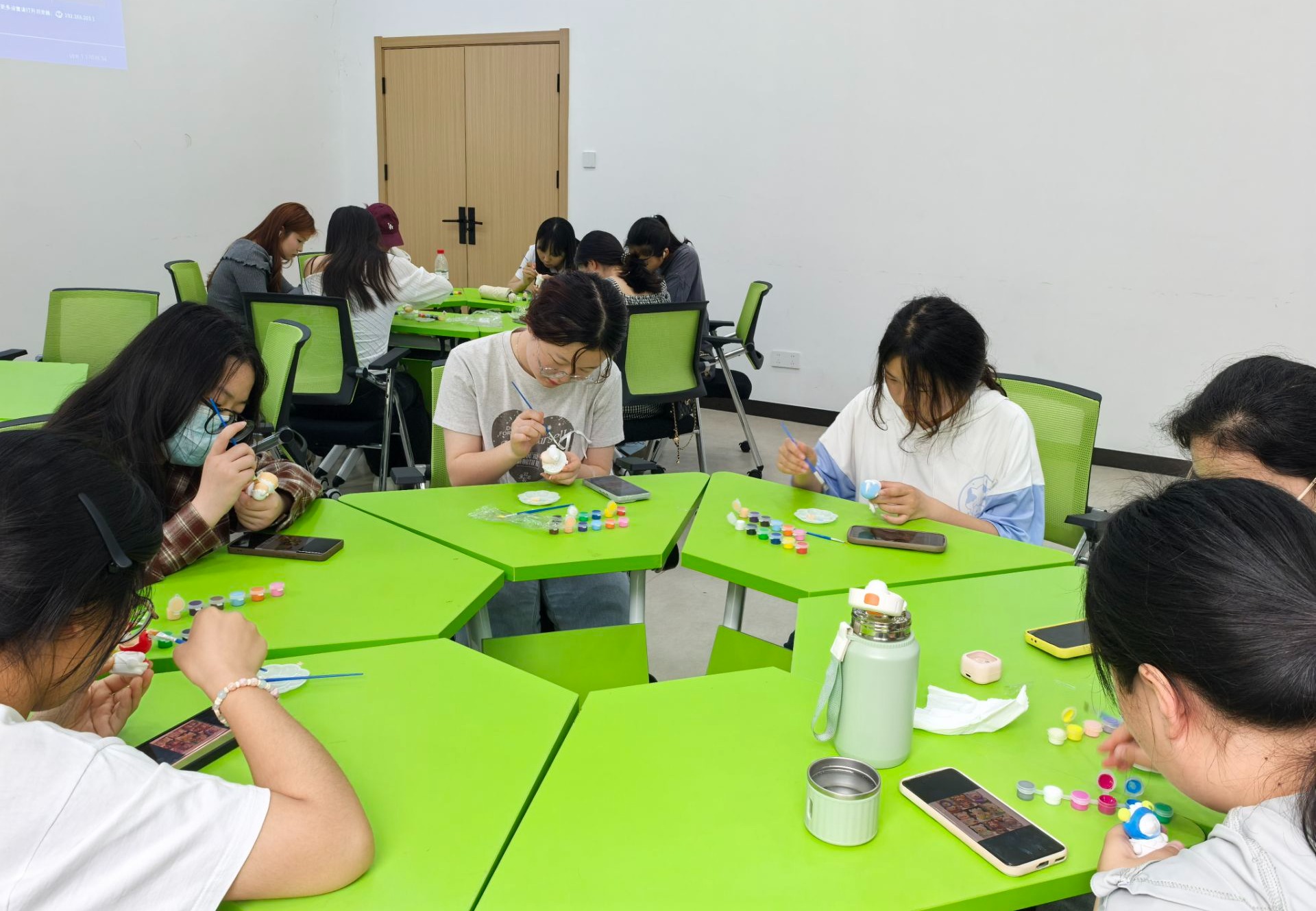 活动创新融合艺术创作与心理疗愈理念,现场准备了丰富多样的空白石膏娃娃及专业绘画工具。同学们可从“蜡笔小新”“背包小熊”等十余款经典卡通形象中挑选,尽情发挥想象力,完成独具个性的艺术创作。