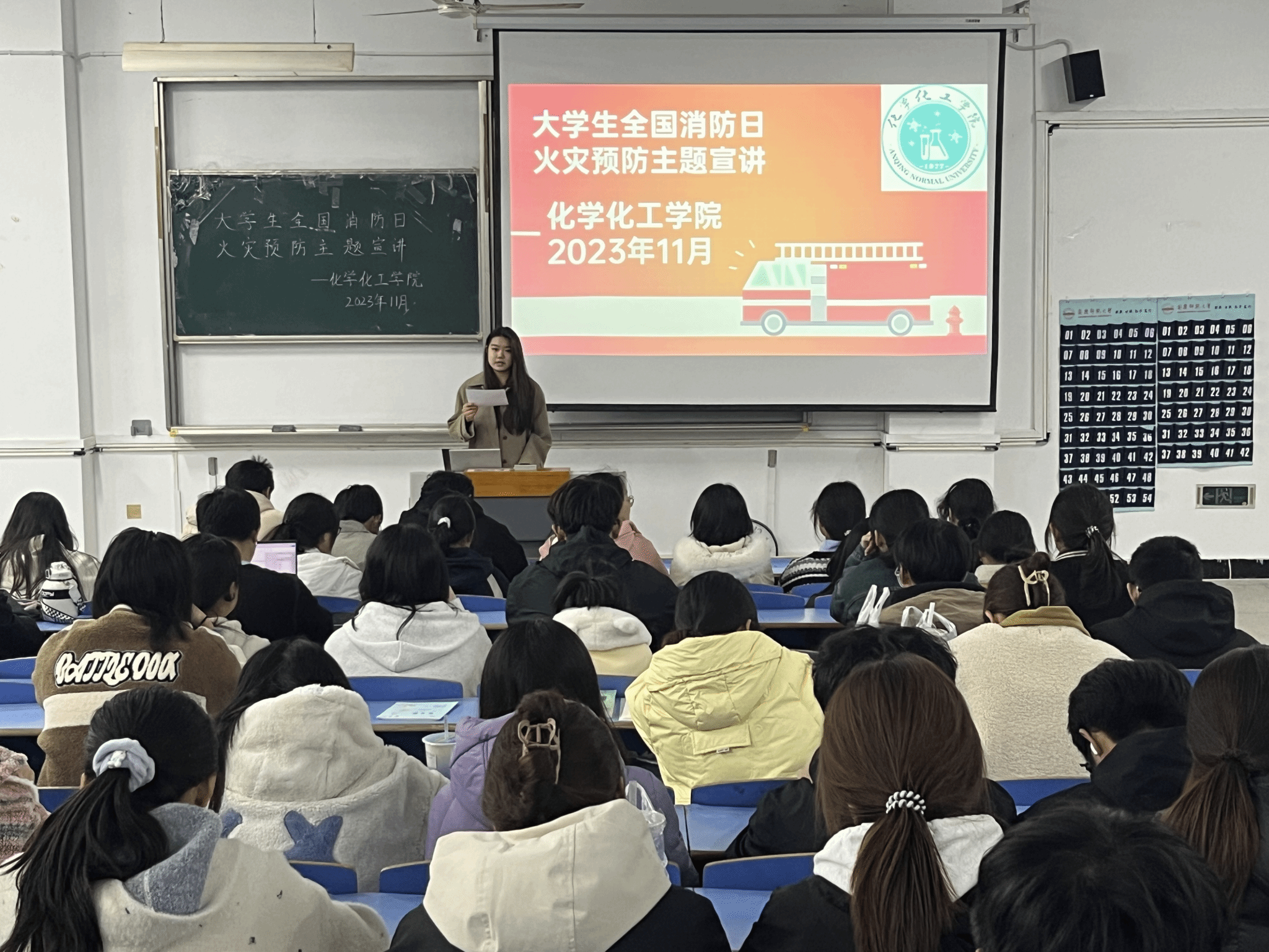 此次活动中,主讲人以生动有趣的PPT课件、消防安全警示教育片、手提式灭火器的使用视频等,向学生们普及了火灾的危害、火灾的预防以及安全措施等消防知识,同时通过知识问答互动,充分调动了同学们的学习兴趣。