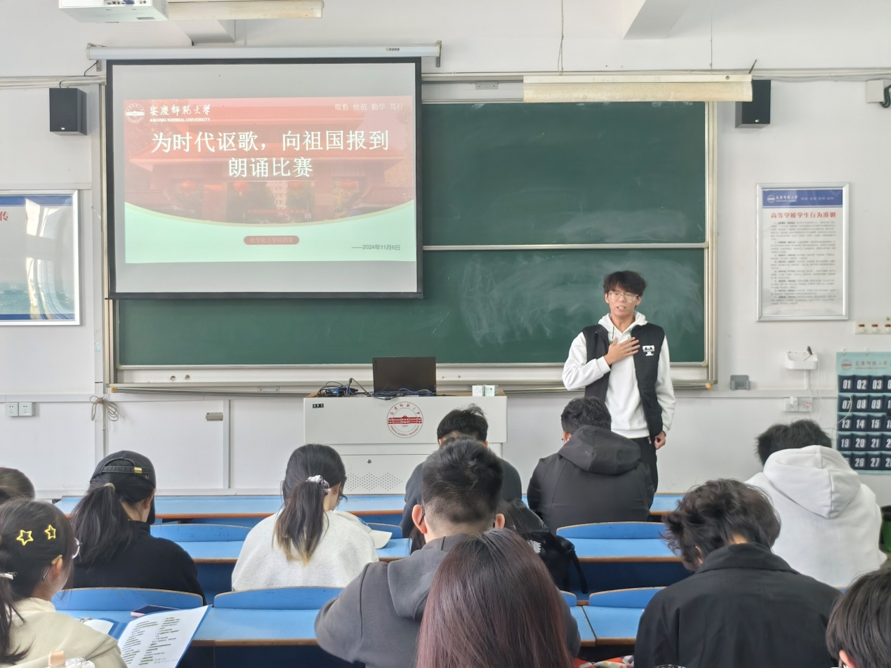 “有一种颜色,它热情奔放。”“今天,一个腾飞的中国更让人读得生动、读得自豪。”选手们以充沛饱满的感情与自信大方的形象赢得了观众们的阵阵掌声。2023级化学工程与工艺1班曹纯正朗诵的《祖国啊,我亲爱的祖国》凭借强烈的感染力带动了全场氛围,让大家感受到诗人对祖国的热爱与敬仰,以及对祖国未来的美好期许;作品《中国红》的朗诵者化学工程与工艺专业2024级祝嘉城同学则通过声音与情感,将“中国红”这一主题的内涵传递给所有人,让大家感受到作为一名中国人的民族自豪与文化自信。“这次比赛让我感受到了朗诵的魅力,同学们用朝气蓬勃的声音诵读时代的诗篇,激发了自己心系家国、无畏前行的青春热情。”化学工程与工艺专业2024级吴淼同学表示。