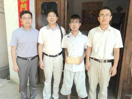 为深入了解学院家庭经济困难学生家庭具体情况,广泛宣传党和国家对家庭经济困难学生的资助政策。8月1月,伟德victor1946党总支书记夏宏宇、党政办公室主任何承东、团总支负责人汪磊、学生资助专管老师程文一行四人来到望江县华阳镇白沙村对09级工艺专业学生祖运进行了回访。