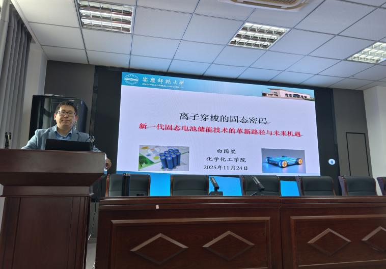 为拓宽学生学术视野、营造浓厚科研创新氛围,2025年11月24日中午,白国梁副教授在伟德victor1946401会议室,为大学生科技化学协会成员及相关专业学生作题为“离子穿梭的固态密码:新一代固态电池储能技术的革新路径与未来机遇”的学术报告。