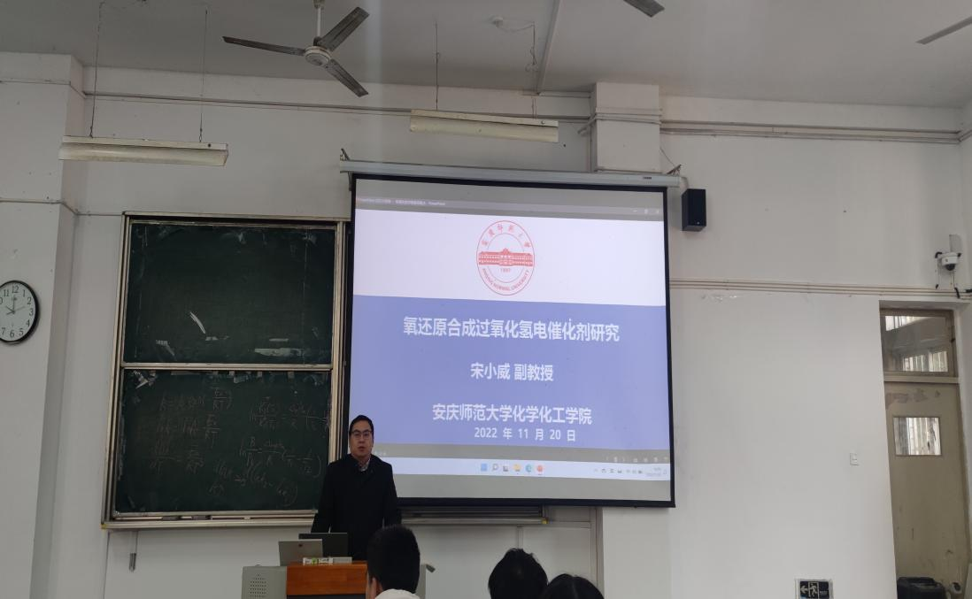 11月20日上午,伟德victor1946宋小威副教授在龙山校区教学楼C108教室作了题为“氧还原合成过氧化氢电催化剂研究”的学术报告,学院化学专业部分学生参加了此次报告会。