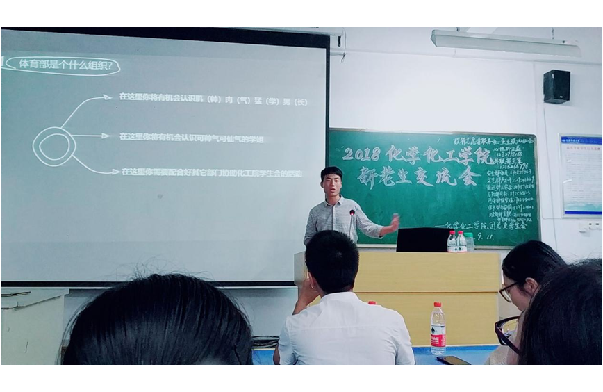 体育部部长余灿在此次交流会中说到:大学不仅是一个学习的地方,更是一个让大家共同成长,共同进步,共同青春的地方。学生会不仅仅是一个组织,更是一个相亲相爱的大家庭,有了学生会,才有了我们化工院这个团结的集体。文者称强,武者称霸!化学化工,谁与争锋!