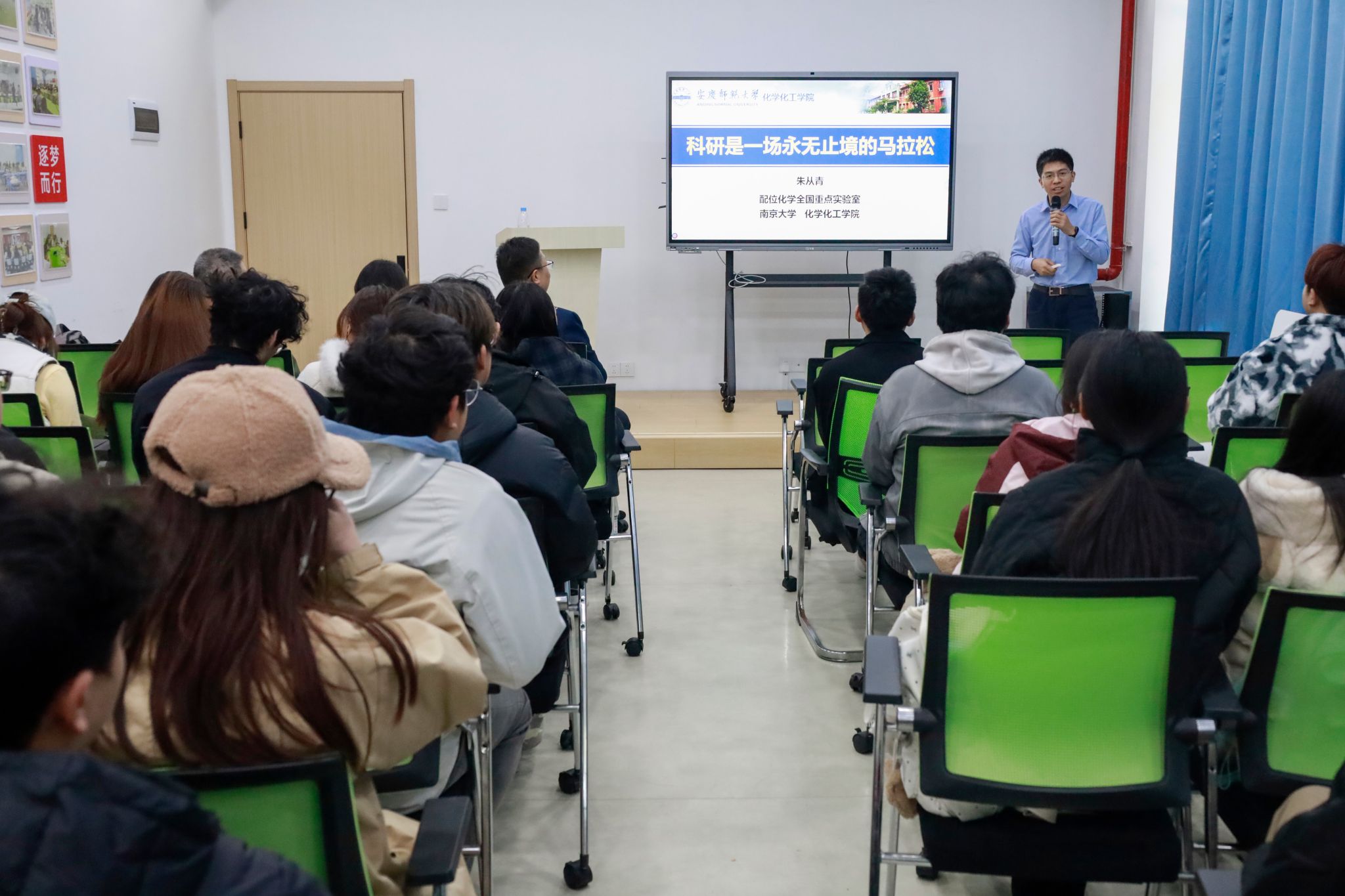 11月27日,伟德victor1946“校友开讲啦”讲座在学校“一站式”社区成功举办,化学专业2008届校友、南京大学至诚特聘教授、博导朱从青带来了一场兼具学术深度与人文情怀的分享,福建师范大学教授、博导姚传好校友及学院近百名师生代表参会,伟德victor1946党委负责人主持讲座。
