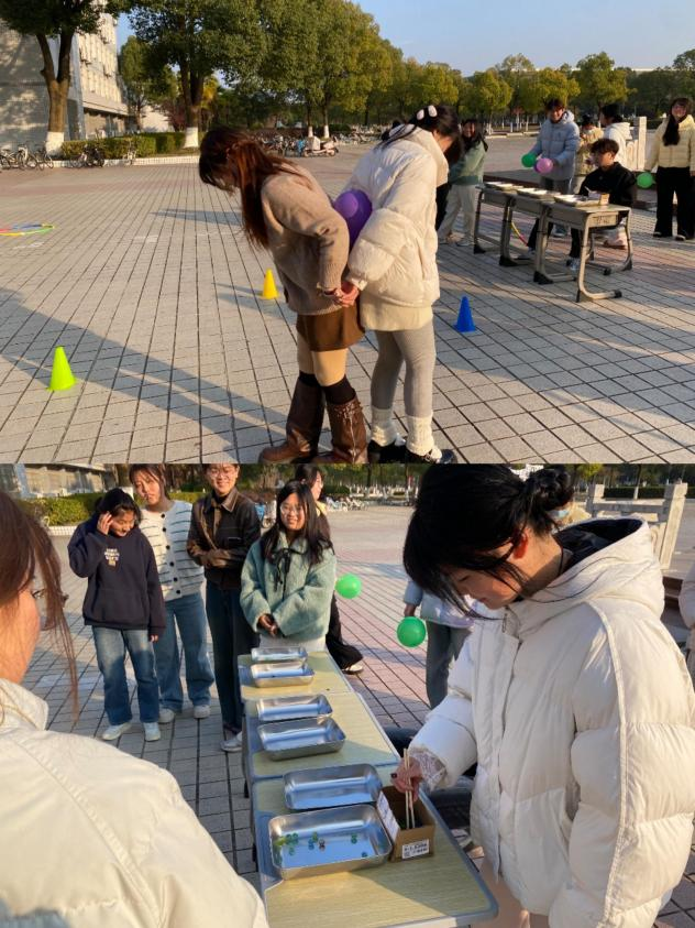 活动现场,同学们四人一组参与闯关。“团队极速拼图”考验协作效率,队员们分工明确,快速完成拼接;“化学知识盲盒问答”将专业知识融入趣味答题,同学们沉着应对、踊跃作答;“一圈到底”环节中队员们手拉手敏捷传递呼啦圈,默契十足;“趣味障碍赛”将气氛推向高潮,绕锥桶跑、背夹球、筷夹珠等项目紧张有趣,各队全力以赴,场边助威声此起彼伏。整场活动在热烈有序的氛围中进行,同学们积极投入,充分展现了协作精神与青春活力。