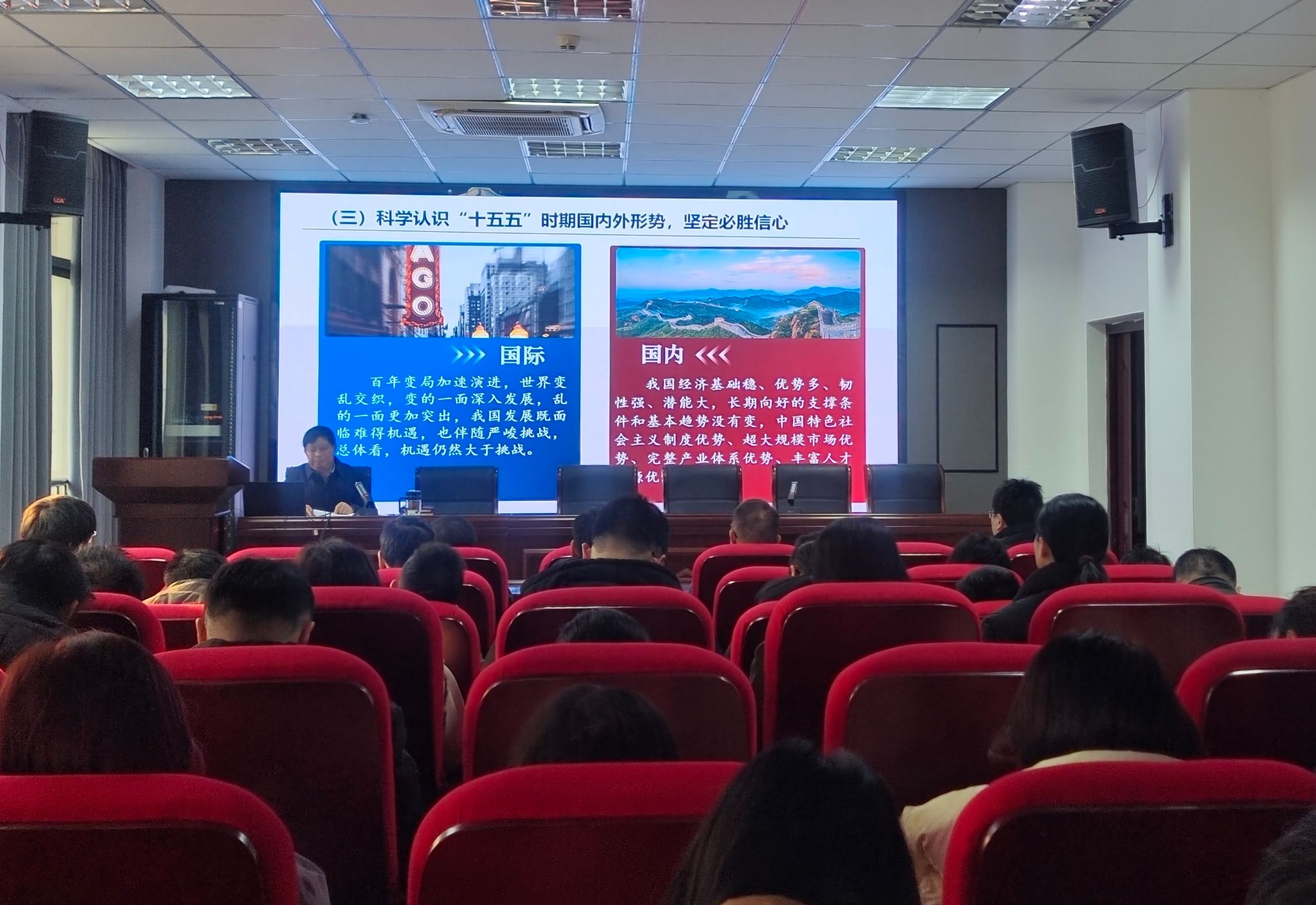 12月17日,伟德victor1946党委书记李新建以《深学笃行党的二十届四中全会精神 奋力谱写学院高质量发展新篇章》为题在全体教职工中进行党的二十届四中全会精神专题宣讲。